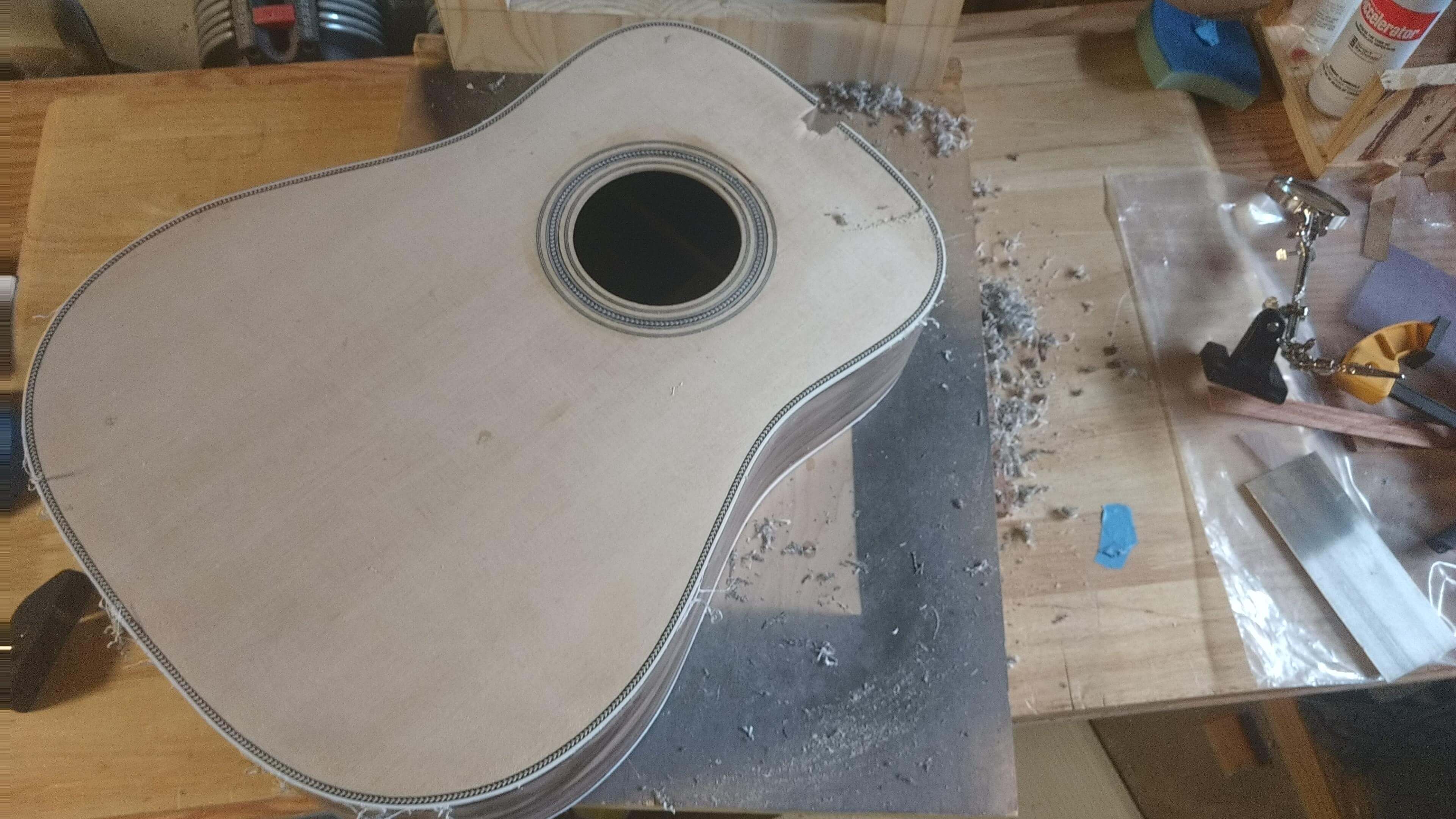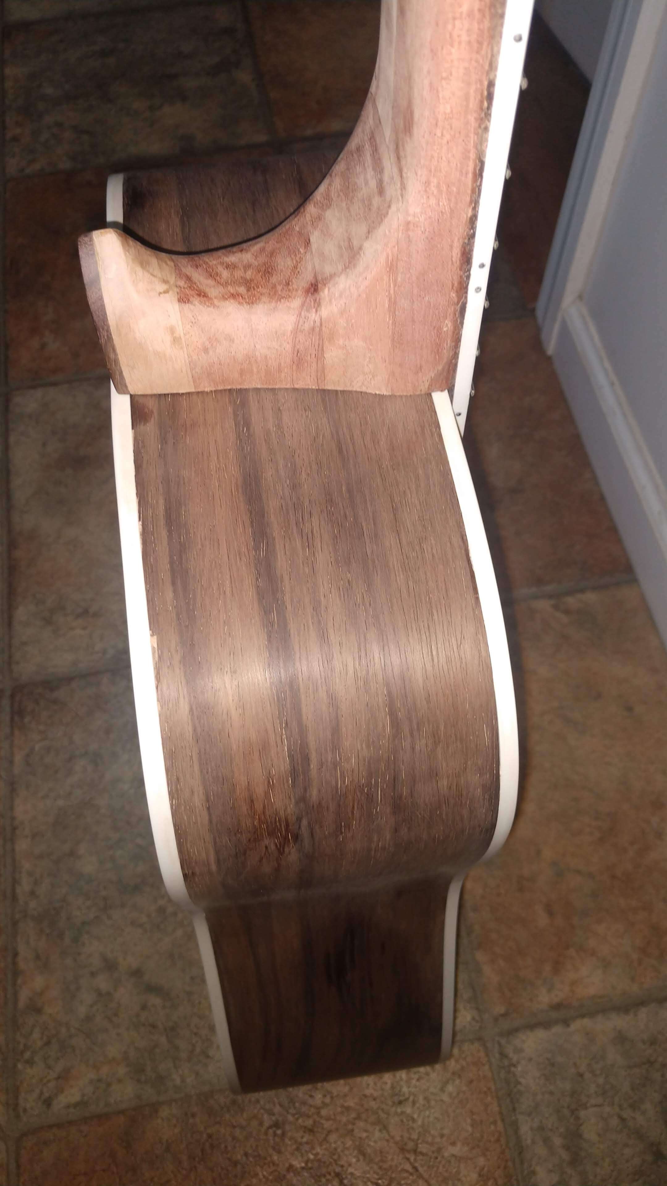 Each guitar body is hand cut from selected reclaimed old growth woods. Each is then carefully sculpted using rasps, files and sandpaper, and each then goes through a unique proprietary process of heat and friction to seal the end grain.