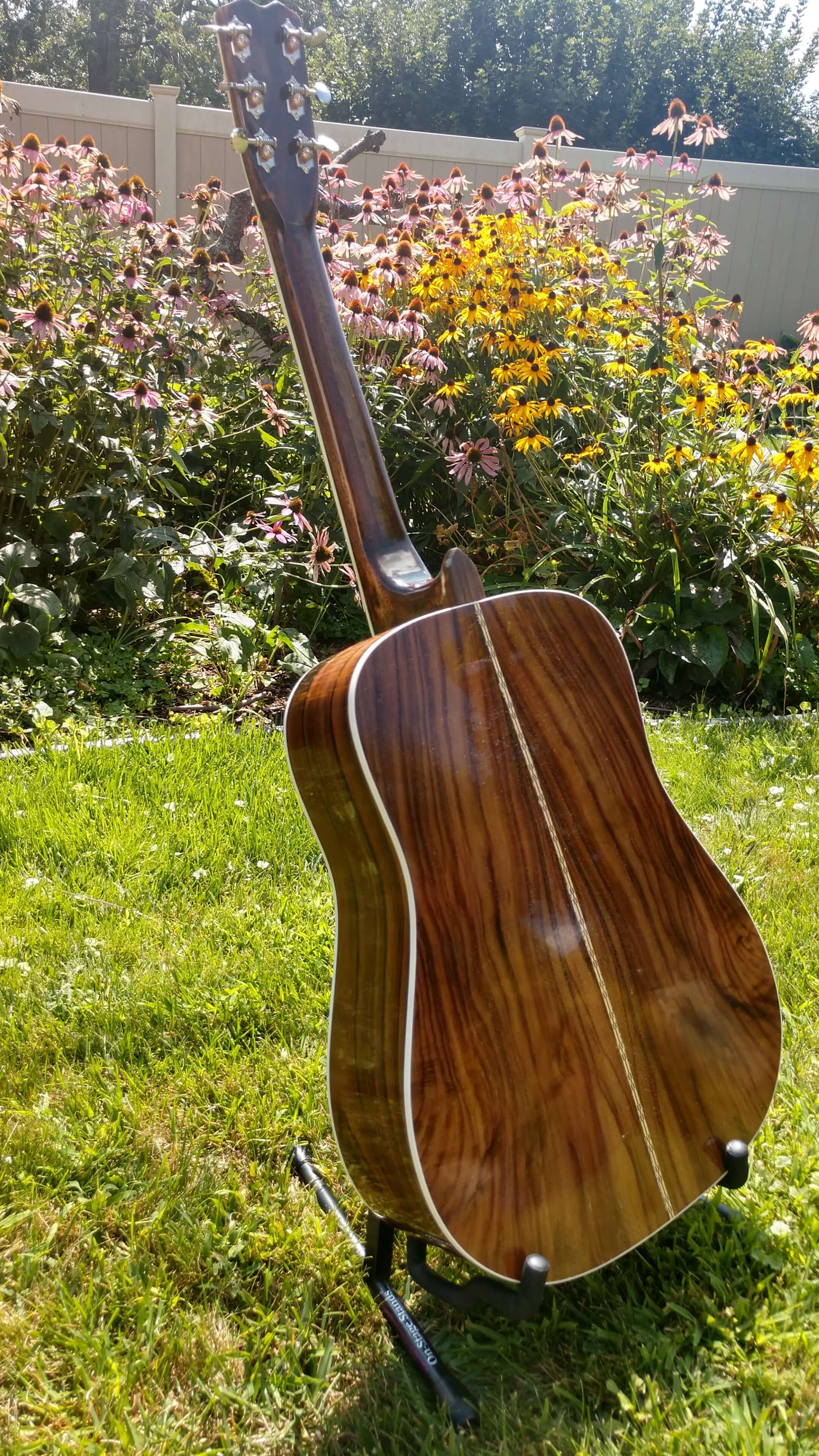 Fingerboard: Made from Mahogany, and finished in clear high-gloss lacquer. Indian Rosewood fretboard with dot inlays and side markers.