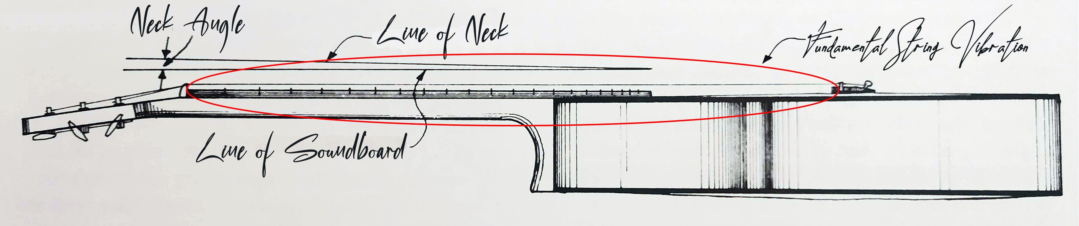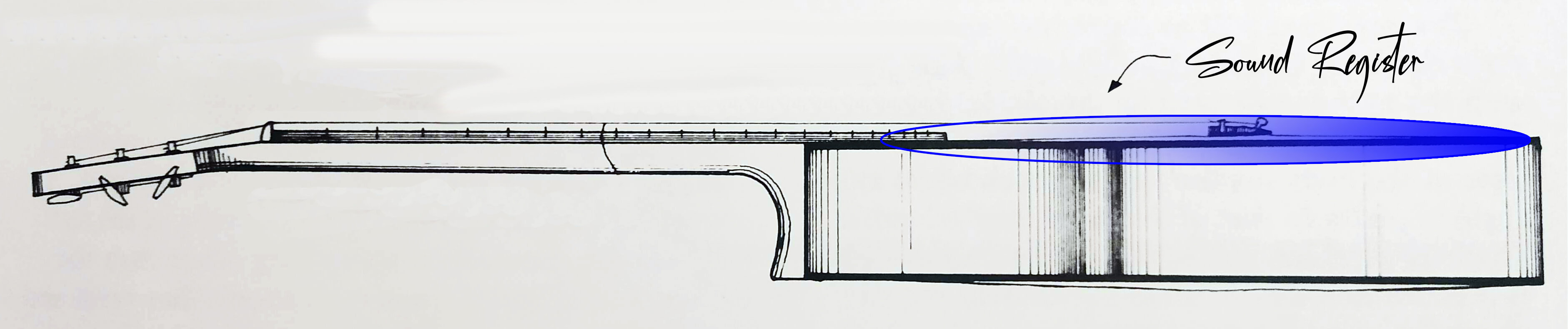 In my previous article I mention that the sound was most loud in the lowest bout, and actually deadened to the point of almost no sound the closer I came to the neck. Figure 4 demonstrates my point and how the sound (in blue) deadens.