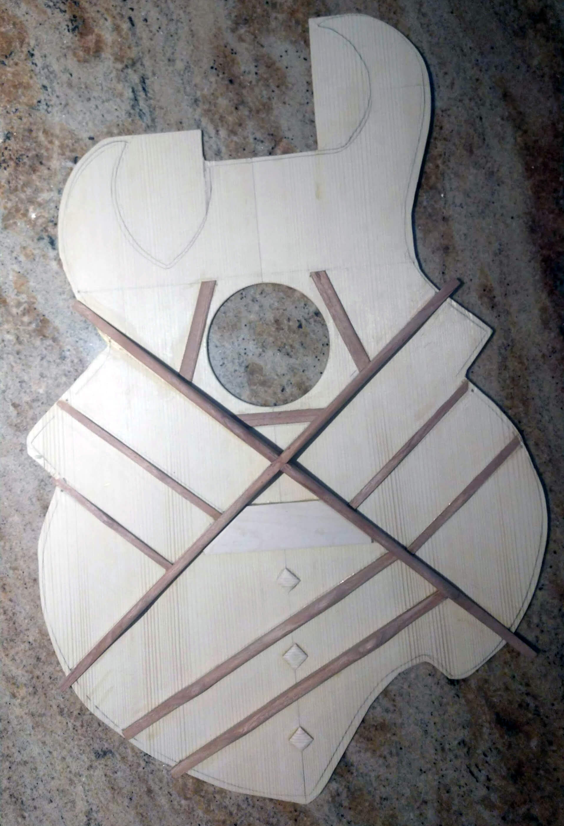 I believe the kinetic energy of the strings is lost doing it the "traditional way" in the upper bout register of the guitar. Traditional bracing doesn't allow for the energy to be captured from the neck through the strings and carried to the bridge and the soundboard. I'm expecting it to be carried through my bracing as well as the strings to the soundboard coupling it back and forth and giving you a full sound.