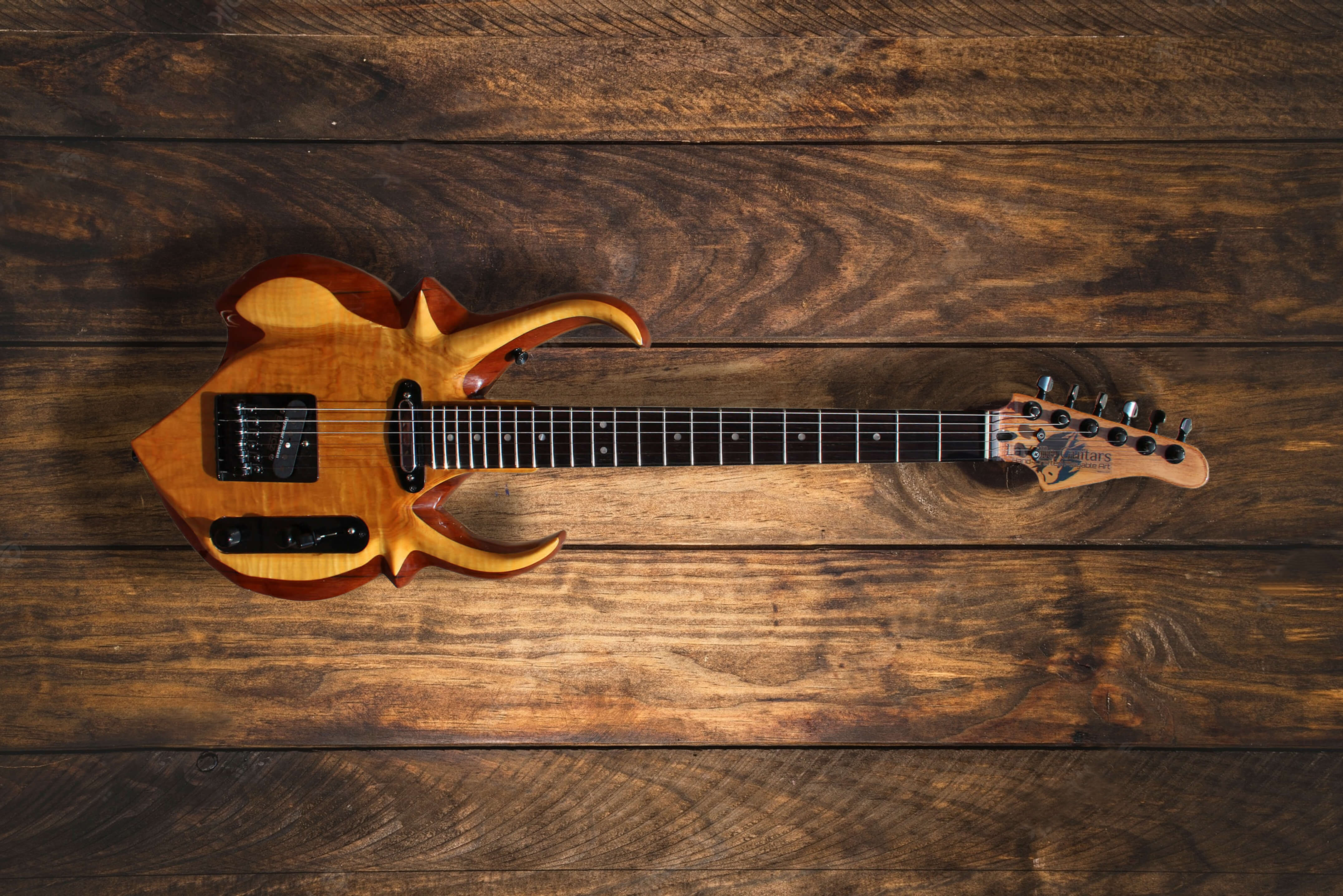 Each guitar is Made-to-Order. Because each guitar body is hand carved and painted, no two instruments, and no two of the same models, are exactly alike. EACH is its own piece of art, separate from the others. These are not mass-produced, and do require a 2-3 month wait time once ordered. Because each guitar is made-to-order, we cannot offer exchanges or returns. Full Details