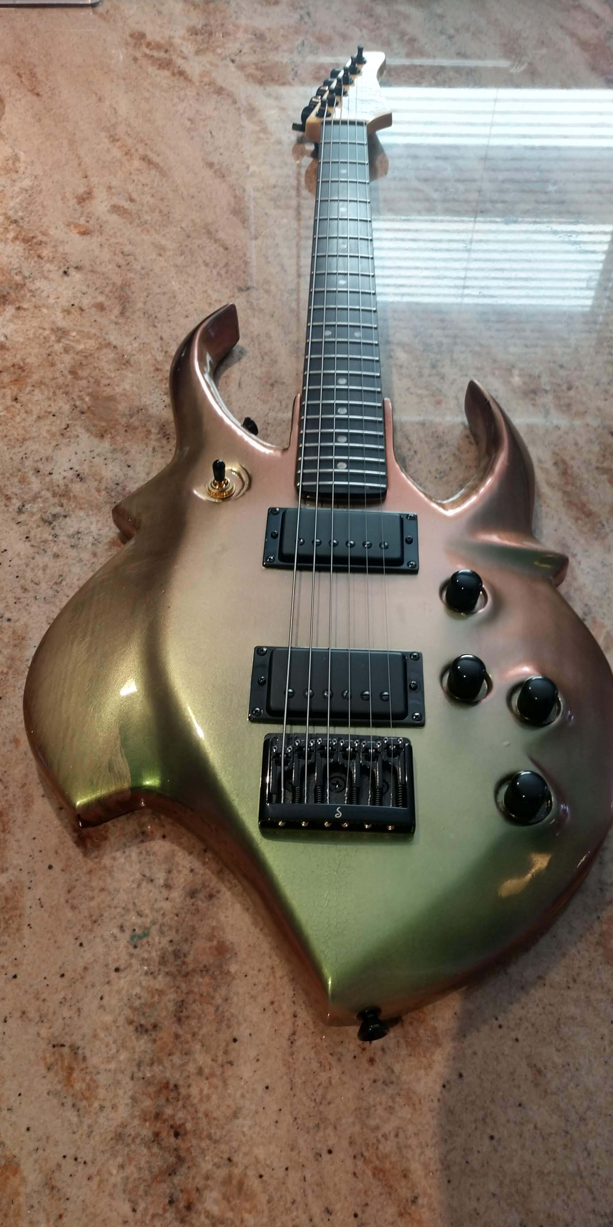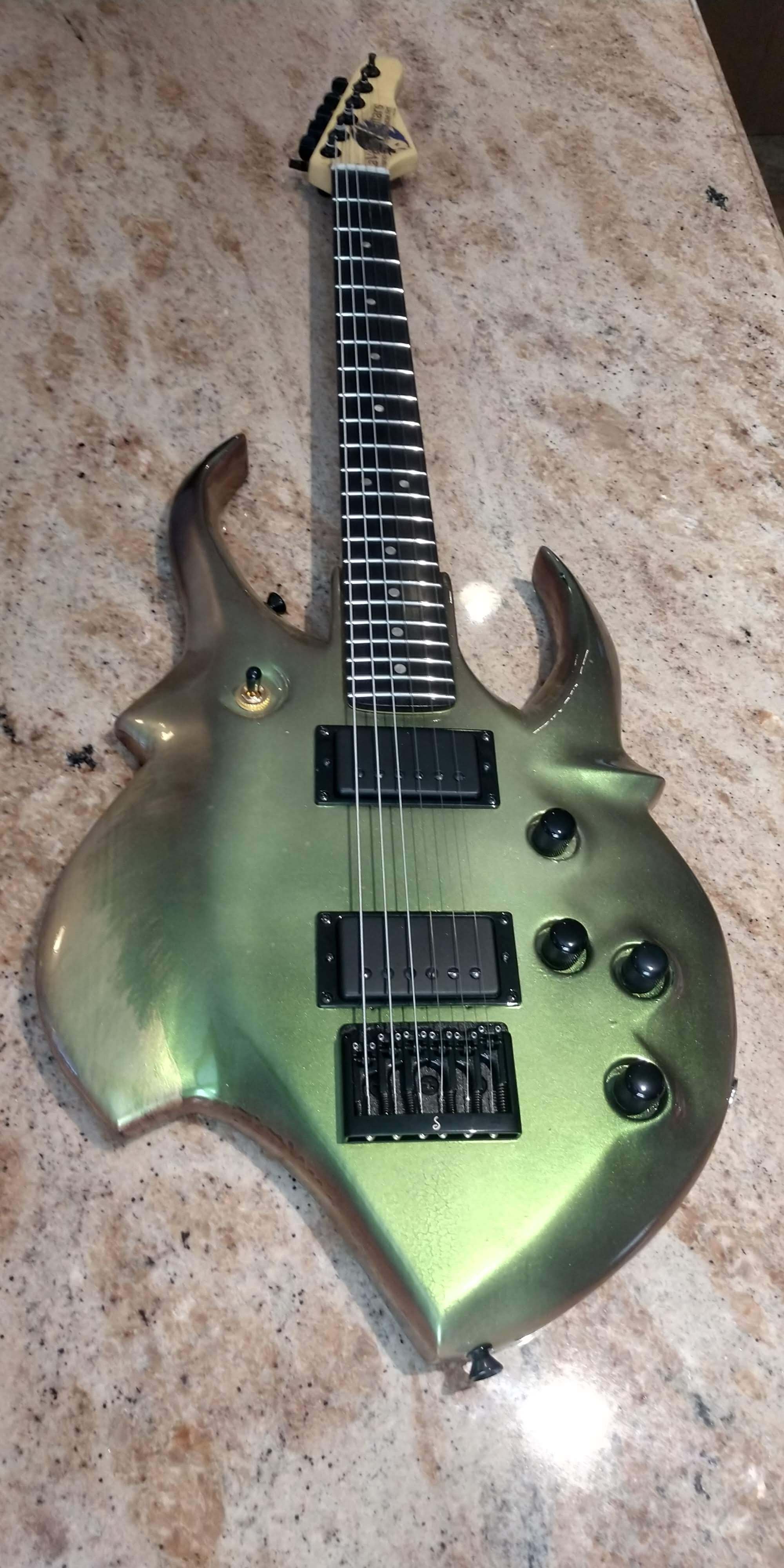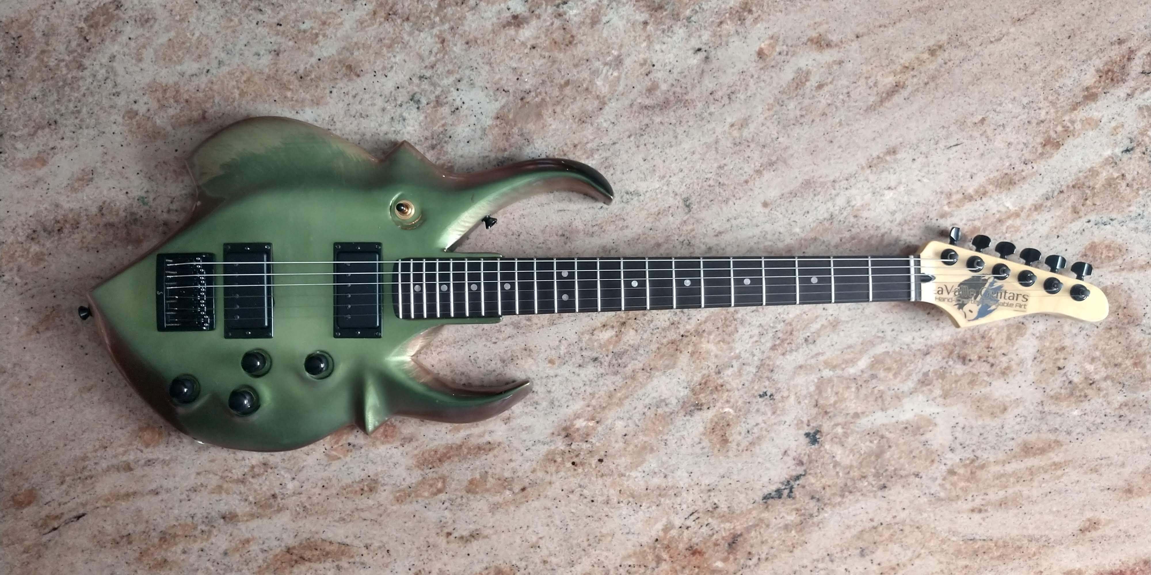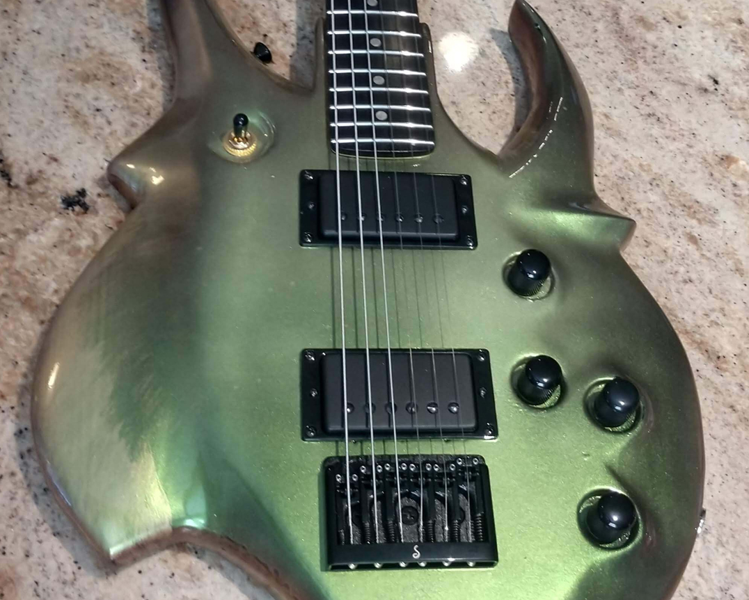 Each guitar is Made-to-Order. Because each guitar body is hand carved and painted, no two instruments, and no two of the same models, are exactly alike. EACH is its own piece of art, separate from the others. These are not mass-produced, and do require a 2-3 month wait time once ordered. Because each guitar is made-to-order, we cannot offer exchanges or returns. Full Details
