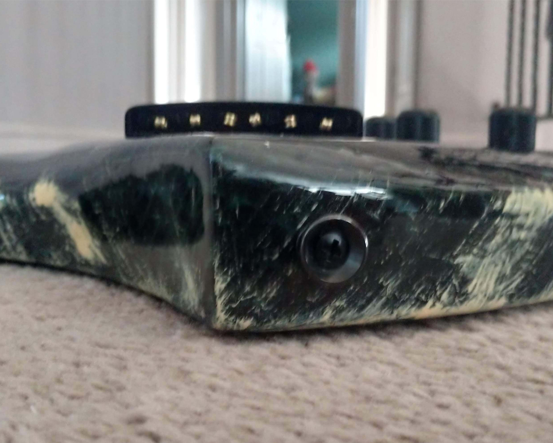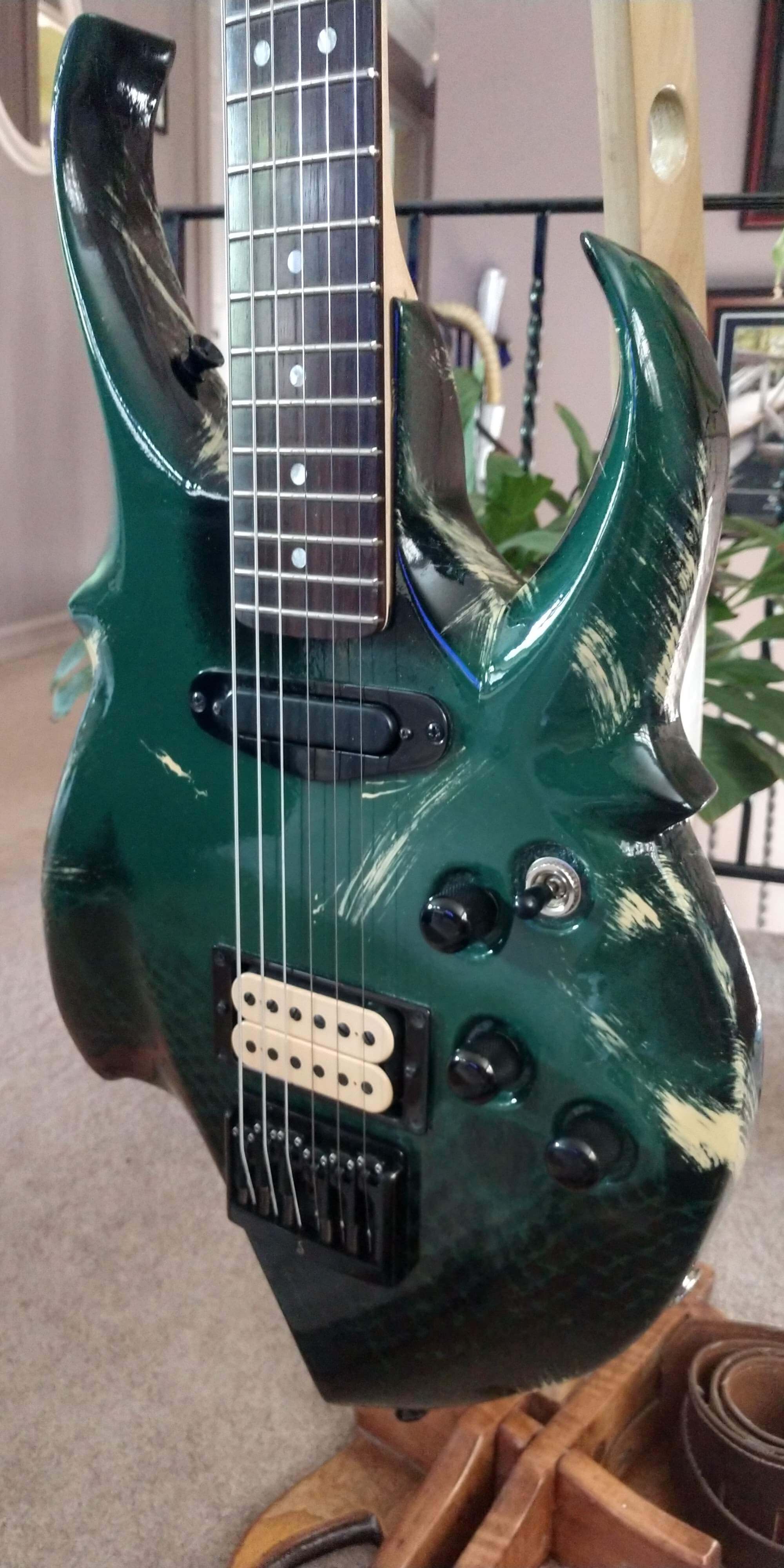 Each guitar body is hand cut from selected reclaimed old growth woods. Each is then carefully sculpted using rasps, files and sandpaper, and each then goes through a unique proprietary process of heat and friction to seal the end grain.